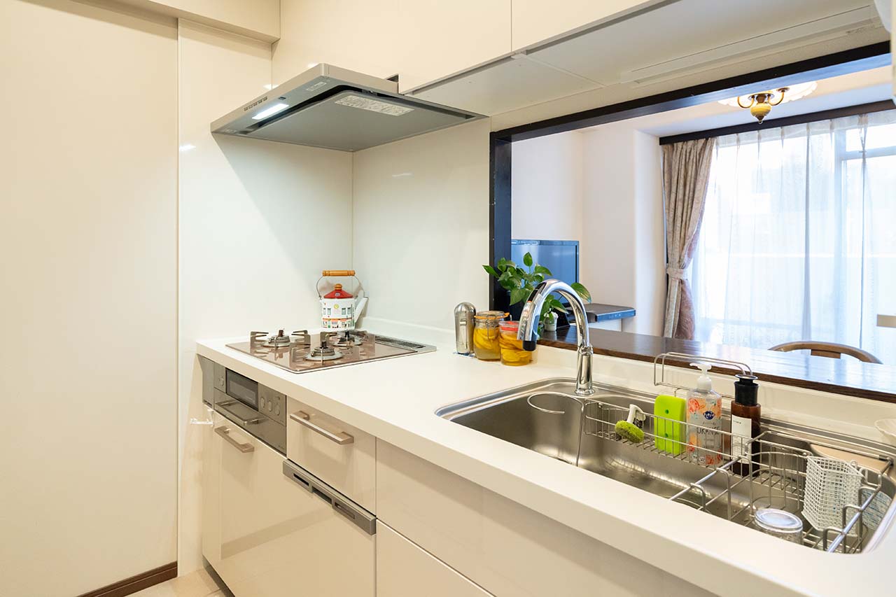 奥様もお仕事されているので、家事の負担を減らしたい。 キッチンには、食洗器とタッチレス水栓を希望。 リビングと和室の間仕切りは敷居をなくしてスッキリさせたい。